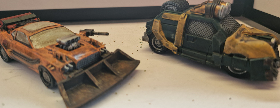 And finally, and totally randomly, I decided to paint some cars for Gaslands. Most are resin but I also raided the grandkids toy bucket and stole and pimped up three die cast toys.