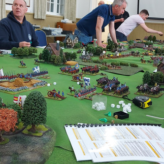 The games rules were created by Mr. Burt and Tim Hall and worked well for this type of game, with myself and my opponent Mark (Peeler) able to pick them up quite quickly and rarely having to call for an umpire to explain something, meaning the game flowed well over the two days (the beer also flowed pretty well as well). The Rabennisten brigade lead my force of five brigades to a very conclusive victory over Mark - destroying three brigades for the loss of none. It has to be said some of the figures in play were absolutely gorgeous.